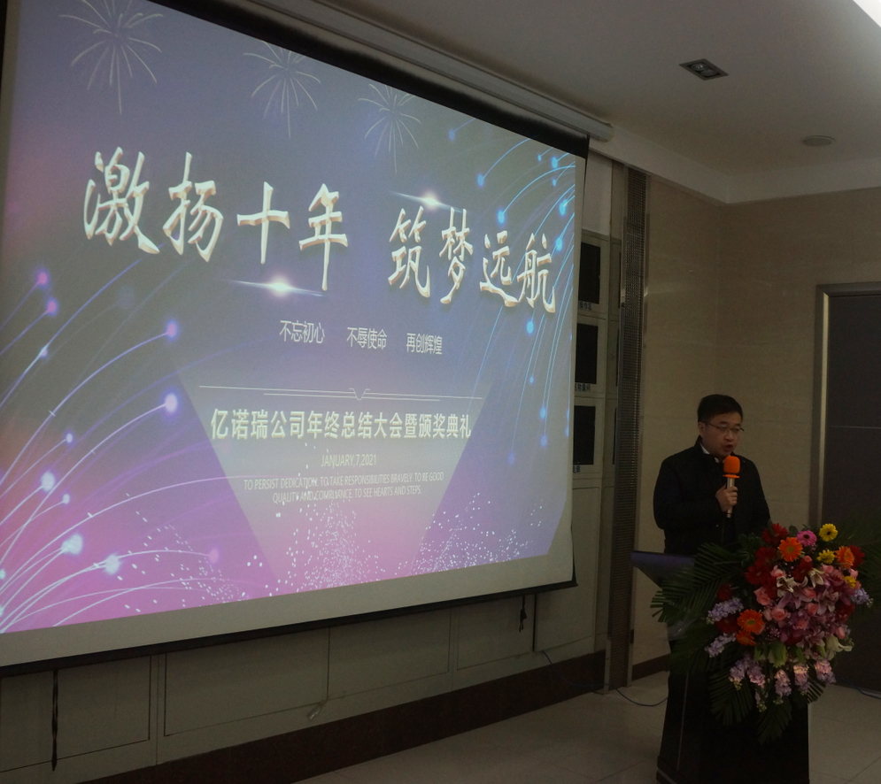 【概要描述】2021年01月08日,湖北亿诺瑞隆重召开以“激扬十年 筑梦远航”为主题的2020年度总结暨表彰会议。