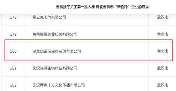 亿诺瑞入围第一批湖北省科创“新物种”企业